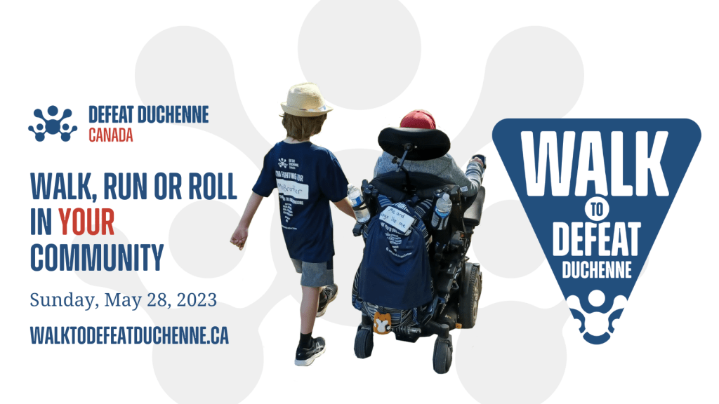 Thousands of Canadian families are in a race against time to find a cure for Duchenne muscular dystrophy, the most common fatal genetic disease diagnosed in childhood. Join XXX (station details) Sunday, May 28, for the Virtual Walk to Defeat Duchenne.