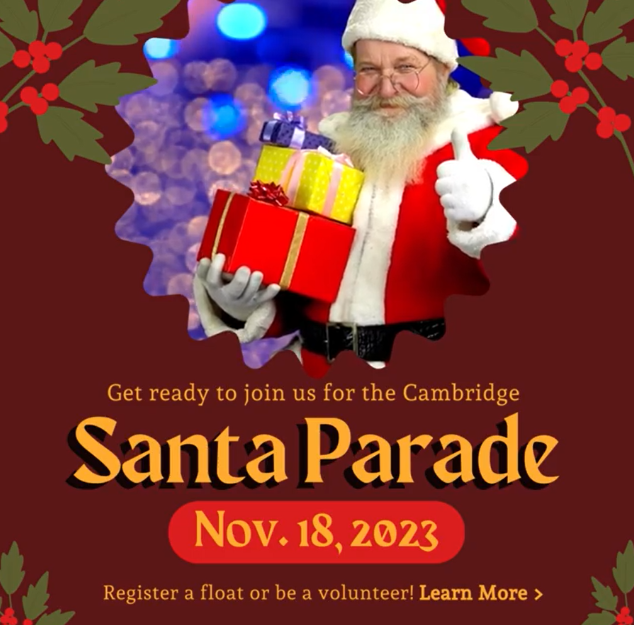 Cambridge Santa Parade 2023! Where Cambridge Santa Parade , Hesepeler Rd, Cambridge Map When Nov 18/23 06:00 PM - Nov 18/23 08:00 PM Age All Website https://cambridgesantaparade.com/ CAMBRIDGE SANTA PARADE 2023! Saturday, November 18th at 6pm Hespeler Road in Cambridge For full details visit the Cambridge Santa Parade website