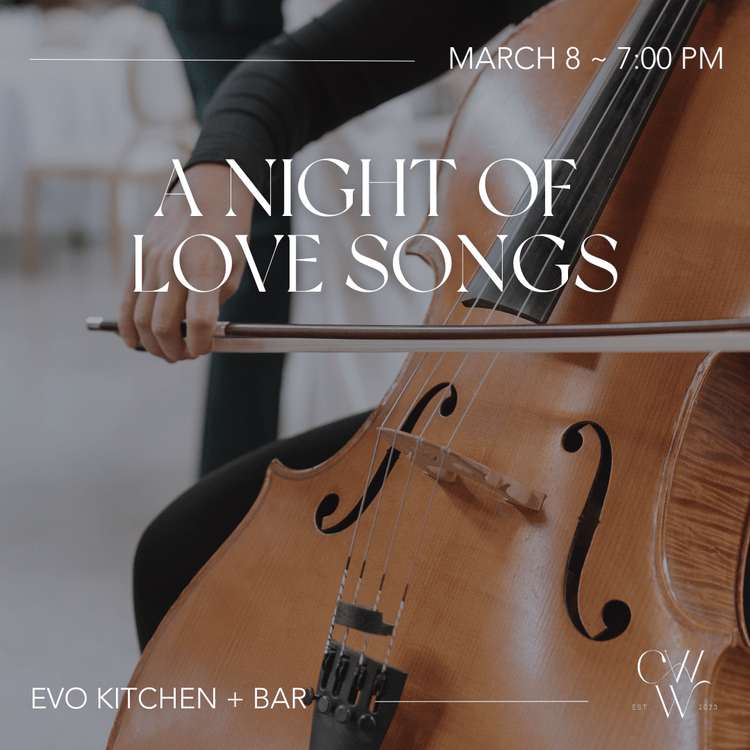 A Night of Love Songs is the perfect opportunity to discover the soundtrack for your special day! Join us on Saturday, March 8th from 7:00 pm to 10:00 pm at EVO Kitchen and Bar for an evening filled with live music performances from talented wedding singers and musical entertainers.