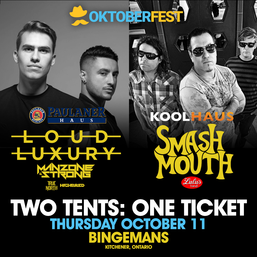 Come celebrate the 50th Anniversary of Oktoberfest at Bingemans Smash Mouth and Canadian electronic duo Loud Luxury on October 11. Tickets starting at only $29.99 – Two tents: one ticket. Get yours now at bingemans.com or seetickets.us