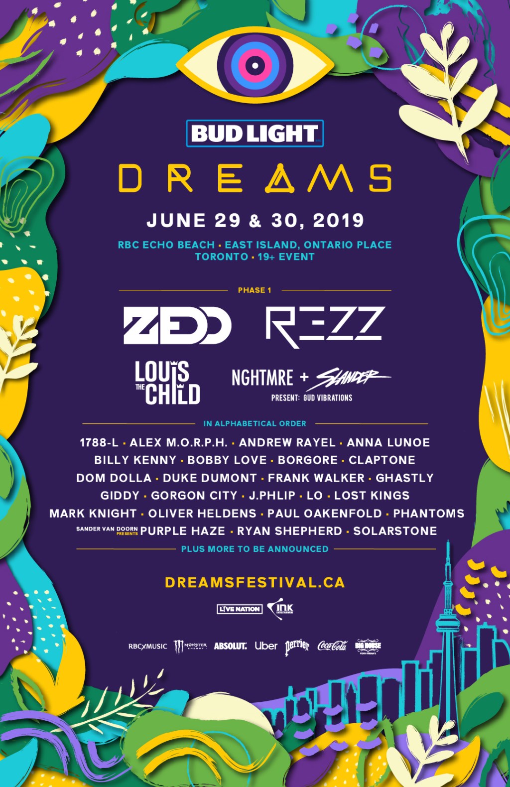 Bud Light Dreams Music Festival is a 19+ boutique festival experience for a discerning electronic music fan, taking place at East Island – Ontario Place in downtown Toronto, on the shores of Lake Ontario. A new luxury festival with a familiar feel, Dreams is a two day, three stage, outdoor, sensorial celebration of Toronto’s music and arts community.