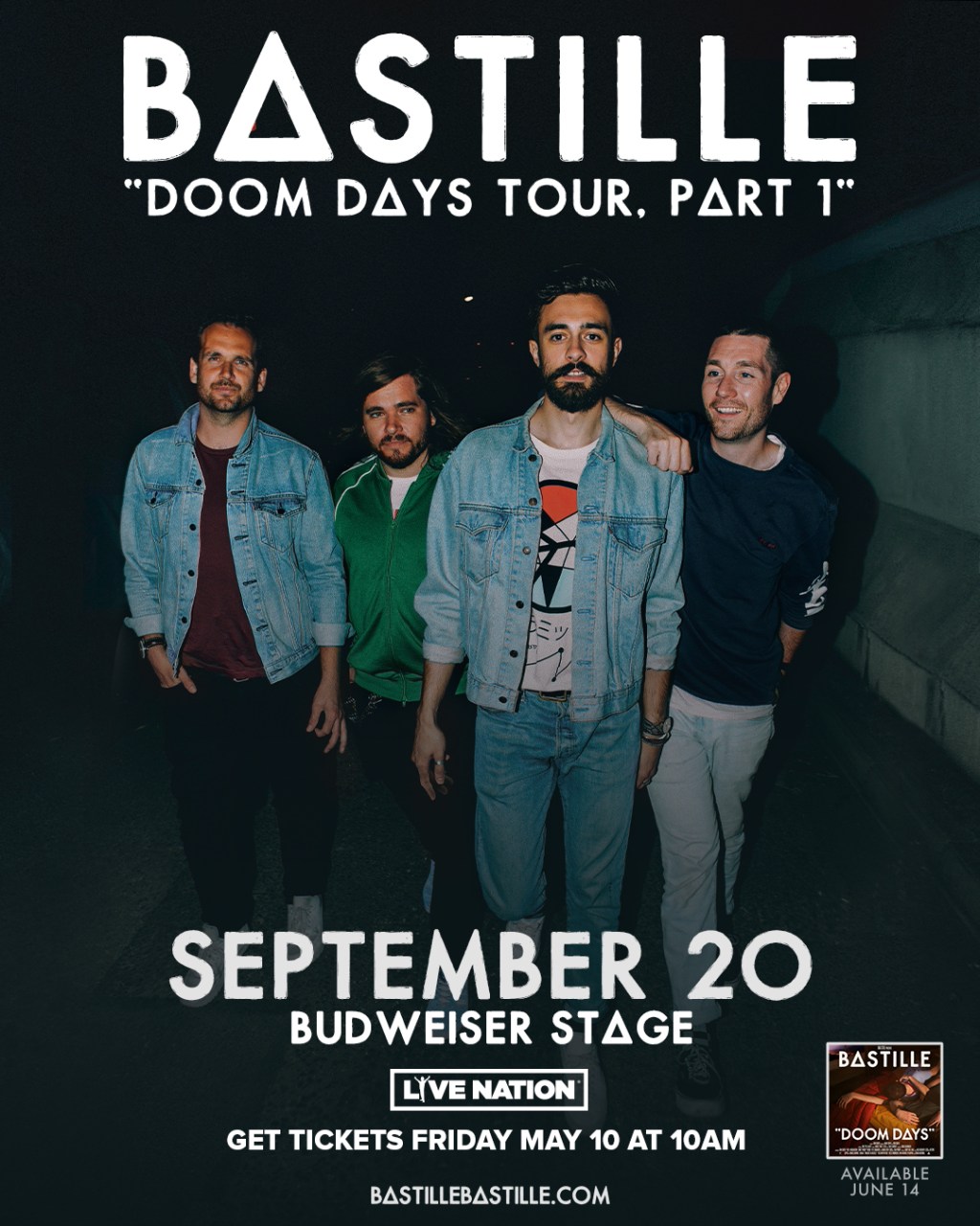 Bastille – Budweiser Stage Where Budweiser Stage, 909 Lake Shore Blvd W, Toronto, Ontario, M6K 3L3, Canada Map When Sep 20/19 07:00 PM - Sep 20/19 11:00 PM Age All DOOM DAYS TOUR PART 1 IS HITTING BUDWEISER STAGE SEPTEMBER 20TH 2019 PRESALE WILL BE HAPPENING FRIDAY MAY 10TH