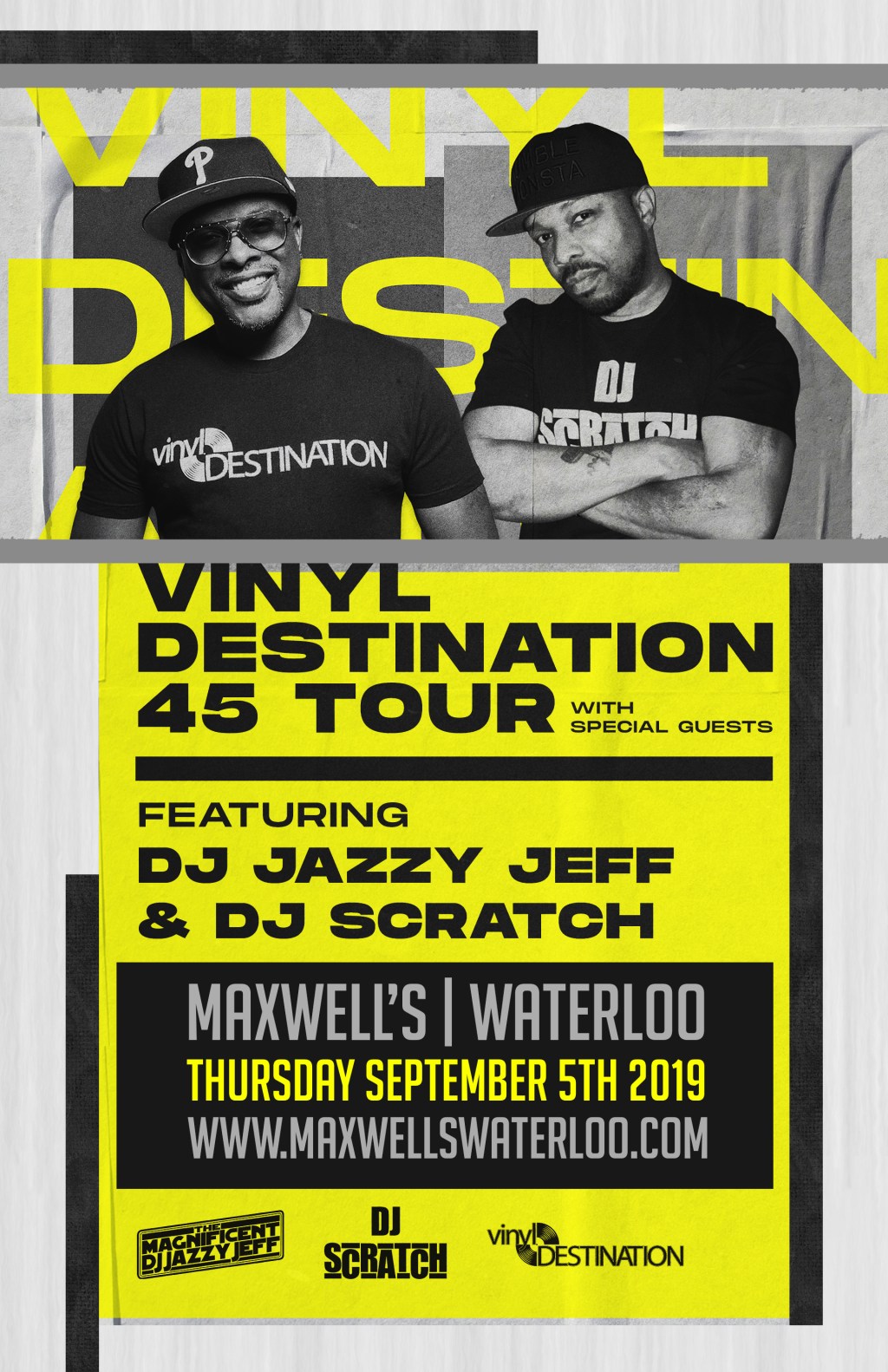 Maxwell’s Concerts & Events & 91.5 THE BEAT are proud to present The Vinyl Destination 45 Tour featuring DJ Jazzy Jeff & DJ Scratch plus Special Guests, Thursday September 5th!