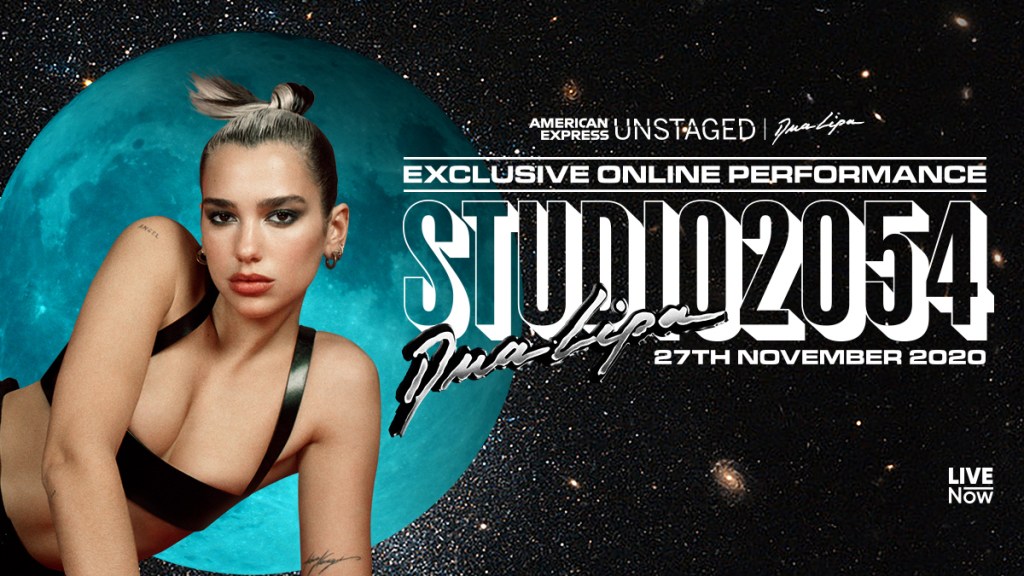 DUA LIPA invites you to come with her to “Studio 2054” for a night of music, mayhem, performance, theatre, dance and much more on LIVENow. The “Studio 2054” show will be a night like no other – this is reality and fantasy exploding together to deliver a brand new multi-dimensional live experience, as part of the American Express UNSTAGED series.