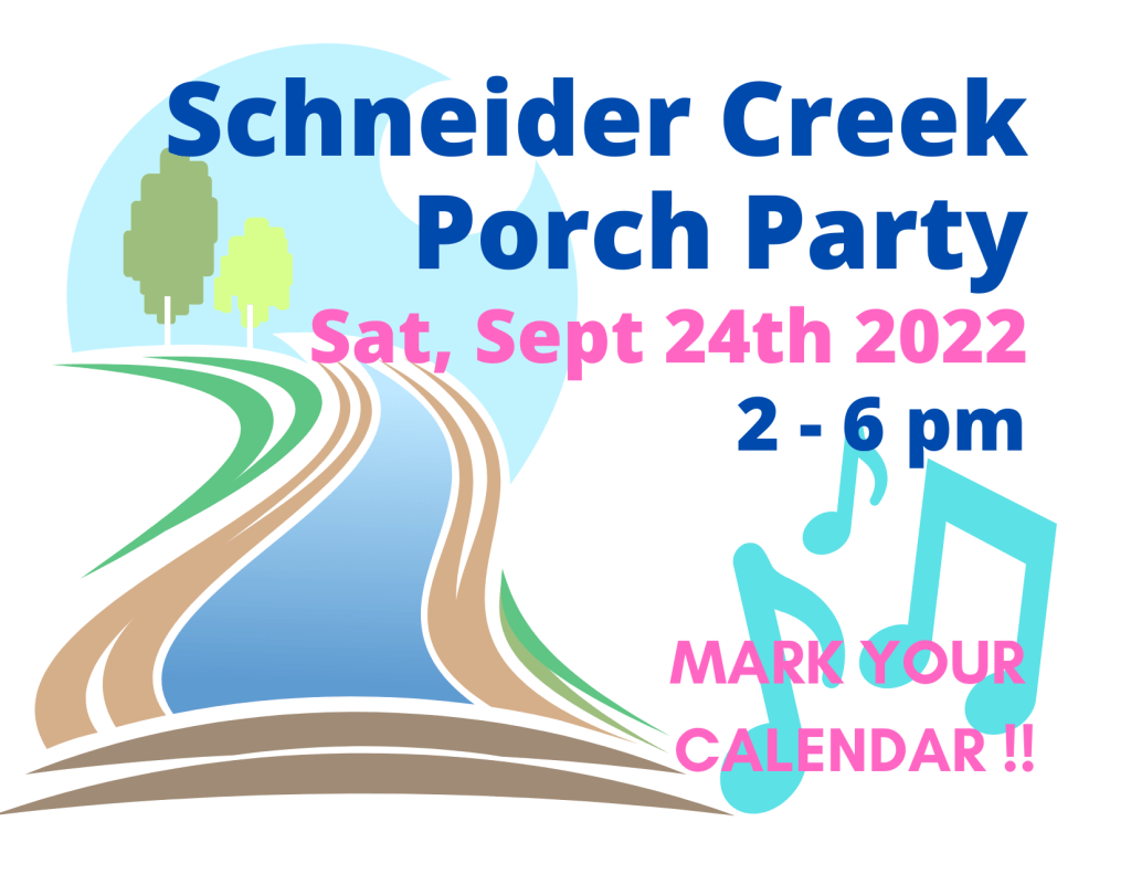 The 8th Annual Schneider Creek Porch Party is happening Saturday, Sept. 24th from 2-6 p.m. for .